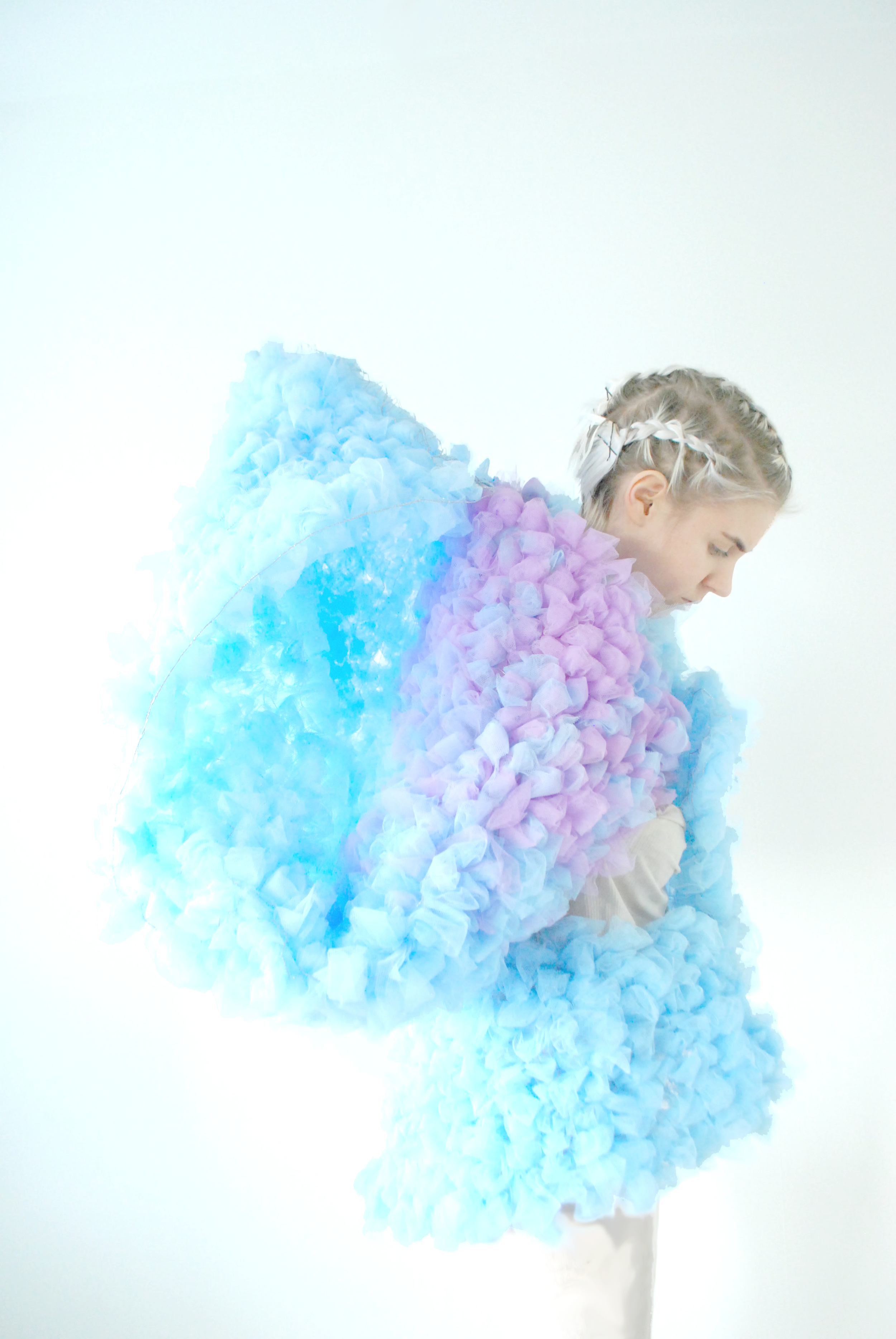 Soft, cloud-like tulle is hand-woven into industrial metal fencing, creating a surface that appears light and delicate but feels heavy, abrasive and resistant to the body.