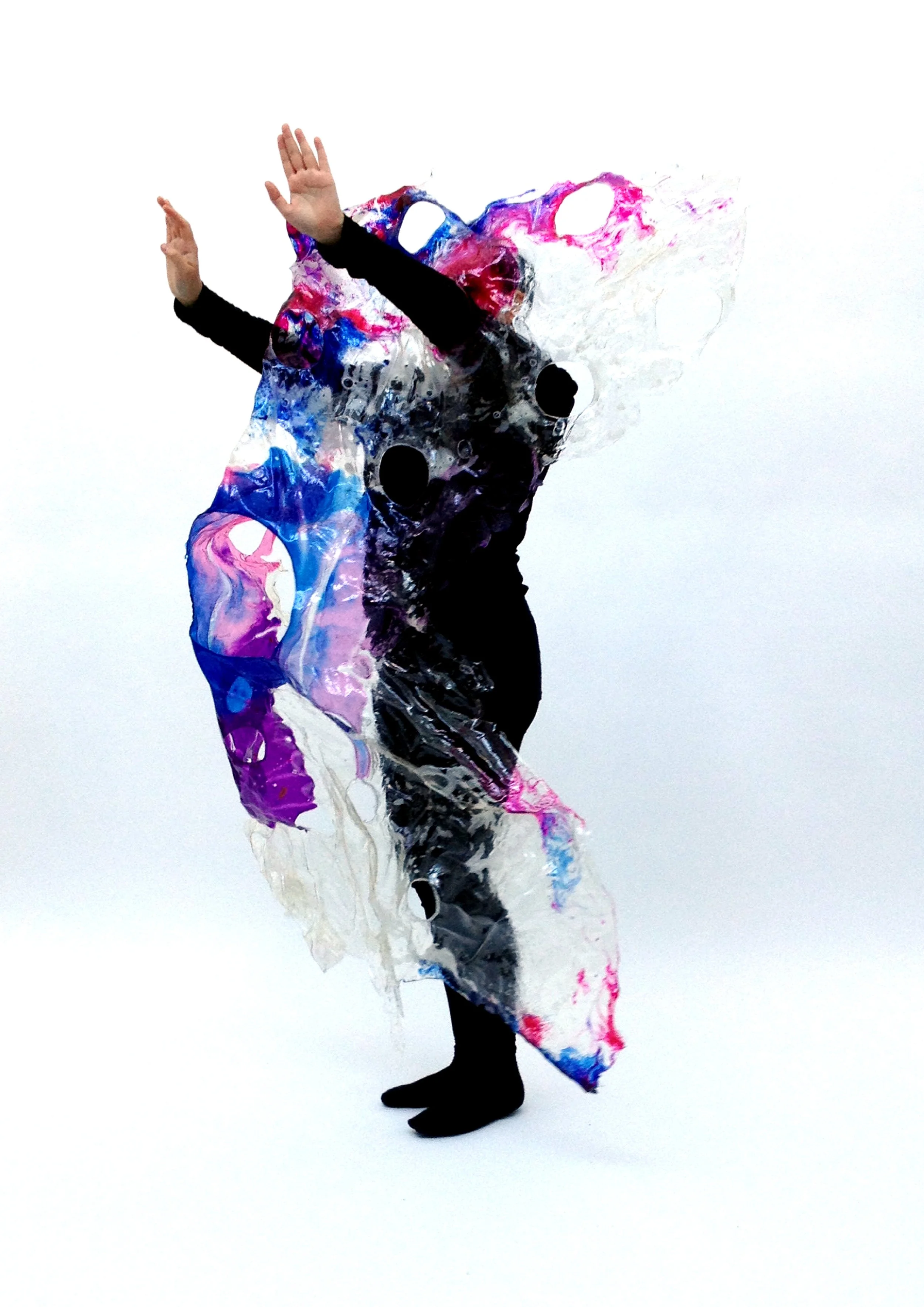 An exploration of color and form usingalternative materials through the making of biodegradable plastic. The material resembles water or ice in its appearance, yet is rigid and shaped by hand. Created using both vegan and animal-derived ingredients, the work investigates sustainability, tactility, and material transformation.